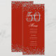 Convites Elegante 50º Aniversário Menu Silver Red Confetti