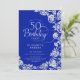 Convite de aniversário real azul prateado floral 50º. Design elegante com rosas, folha de ouro falsa e letra de script de tipografia. A Trendy convida o cartão perfeito para uma festa de na moda. Pode ser personalizado para qualquer idade. Personalize com seus próprios detalhes. Impressos convites Zazzle ou modelo de impressão digital instantânea para download.