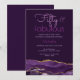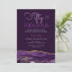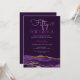 Convite de Aniversário de 50 anos Fabuloso 50 apresenta bordas de fatia de geodo de ágata roxa profunda com texturas de aquarela e sotaques de brilho dourado falso em um fundo cinza carvão escuro. Os textos são uma combinação de cores roxas claras e brilhantes e podem ser personalizados ou alterados usando o menu de edição.
