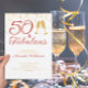 Convites Elegante 50 e fabuloso aniversário Dourado e rosa