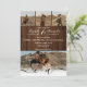 Elegante Chic Rustic Brown wood elegante caligrafia clássica convite de casamento e monograma de iniciais. Com um roteiro moderno e moderno, adicione 5 de suas fotos.