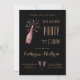 Comemore seu aniversário de 60 anos em estilo com este convite de aniversário preto e ouro. Uma aquarela de uma garrafa de champanhe cor-de-rosa aberta tem um rótulo que pode ser personalizado com seu ano de nascimento, este ano, suas iniciais ou outro texto, até 4 letras. A tipografia elegante aparece por todo o lado, e o seu nome é definido numa escrita bonito. A localização da festa e os detalhes são separados por uma aquarela de dois copos de champanhe cheios de champanhe rosado borbulhante. Você pode personalizar o aniversário para outro ano, se quiser.