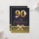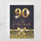 Convite de Aniversário Elegante de Na moda Negro e 90 Dourado. Design de, de brilho dourado e arco cintilante dourado na frente, bem como de folha de ouro 90. Adicione detalhes da parte atrás.