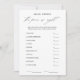 Prepare-se para trazer algum entusiasmo e riso ao seu chá de panela com o nosso Elegante Adivinhem o Cartão de Jogo do Chá de panela de Preço Certo. Este jogo divertido e interativo fará com que seus hóspedes adivinhem o preço certo e competam para serem os vencedores finais. Neste design preto e branco minimalista, nosso cartão de jogo fornece uma adição elegante e na moda às suas festividades de chá de panela. Adivinha que o jogo do chá de panela do Preço Certo é um favorito clássico, onde os convidados testarão seu conhecimento e intuição adivinhando o valor do dólar mais próximo do total de todos os itens. Com seu elegante design e formato fácil de usar, nosso cartão de jogo se misturará facilmente ao decoro do chá de panela. Cada hóspede pode preencher as suas suposições e compará-las com os preços reais, criando uma atmosfera viva cheia de risos e competições amigáveis. Este jogo não só adiciona um toque de diversão à sua celebração, como também serve como uma quebra-gelo excelente para os hóspedes que talvez não se conheçam bem. É a maneira perfeita de quebrar o gelo e fazer com que todos se envolvam nas festividades. Então, por que esperar? Adicione um entusiasmo ao seu chá de panela com o nosso Elegante Adivinhe o Cartão de Jogo do Chá de panela de Preço Certo. Prepare-se para um evento memorável e divertido que deixará todos falando sobre seu dia especial por anos. Peça o seu agora e deixe os jogos começarem!