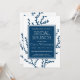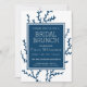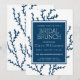NewParkLane - Convite de café da manhã de noivado náutico moderno, apresentando um padrão elegante de algas marinhas azul-teal / índigo sobre um fundo branco.