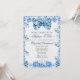 Este elegante design apresenta uma aquarela vitoriana motif floral que apresenta delicados elementos azuis e brancos do estilo chinoiserie, incluindo um arco de colheita. A caligrafia de na moda é combinada com fontes clássicas de serifa.