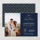 Celebre o seu dia especial com este convite personalizado de aniversário de casamento com foto. Este design elegante apresenta uma bela tipografia e padrões de fundo em dourado falso e fundo azul. Você pode personalizar o texto para qualquer ano. Substitua a foto de exemplo pela sua própria foto. Suprimentos para festa combinando estão disponíveis na minha loja BaraBomDesign.