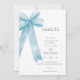 Uma maneira perfeita de celebrar um primeiro aniversário de meninos com este tema elegante do arco azul. Chá o pequenino com este bonito e azul friso e o aniversário do arco Boy. Convide seus amigos com este convite de aniversário de menino que apresenta um sotaque sofisticado de arco azul para bebê desenhado à mão.