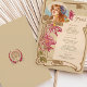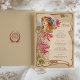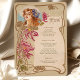 Este menu de janto de casamento de Art Nouveau, inspirado na safra, captura a elegância eterno da era com as suas graciosas ilustrações florais e intrincada design. A frente do cardápio apresenta uma bela mulher adornada com flores, emoldurada por linhas fluentes e tons de terra quente de bege, ouro e blush. Os sotaques delicados roxos e magenta das flores adicionam um toque de cor, enquanto o fundo da safra macia melhora a estética clássica. O lado inverso inclui um emblema minimalista que complementa a arte detalhada da frente. Perfeito para casais que procuram uma única papelaria de casamento inspirada na arte que exude o encanto e a sofisticação do mundo antigo.