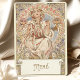 Este belo menu de janto de casamento mostra um belo design de Art Nouveau, com ilustrações que lembram o estilo icônico de Alphonse Mucha. A frente do cardápio destaca uma serena cercada por padrões intrincados e motins florais em tons suaves e sujos de creme, ouro mudado, verde-sábio e pastéis delicados. A elegância vintage da ilustração evoca um sentido de beleza eterno, fazer perfeito para um casamento clássico ou inspirado na arte. O verso apresenta uma bela imagem de uma mulher segurando um copo, acrescentando um toque comemorativo, com o menu detalhado do janto impresso em uma fonte elegante. Ideal para casais que procuram uma estética artística e vintage para o seu dia especial.