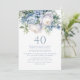 Convites Elegante Azul-aniversário de 40 anos Floral Branco
