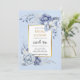 Convide seus entes queridos em estilo com este elegante convite de casamento azul e empoeirado com florais de aquarela pintados à mão em tons de azul macio e violeta, emoldurados com sotaques de ouro luxuosos. Totalmente personalizável, este design moderno, mas eterno, é perfeito para casamentos românticos de jardim, cerimônias clássicas e eventos de temas azuis. Edite facilmente os nomes, a data, o local e o texto para se adequar ao seu dia especial.