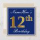 Convites Elegante, Azul, Faux Dourada 12 Aniversário + Nome