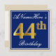 Convites Elegante, Azul, Faux Dourada 44 Aniversário + Nome