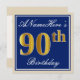 Convites Elegante, Azul, Faux Dourada 90 Aniversário + Nome