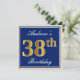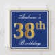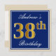 Convites Elegante, Azul, Faux Dourado 38º Aniversário + Nom