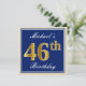 Convites Elegante, Azul, Faux Dourado 46º Aniversário + Nom