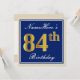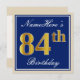 Convites Elegante, Azul, Faux Dourado 84º Aniversário + Nom