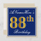 Convites Elegante, Azul, Faux Dourado 88º Aniversário + Nom