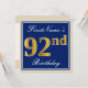 Convites Elegante, Azul, Faux Dourado 92º Aniversário + Nom