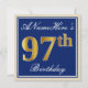 Convites Elegante, Azul, Faux Dourado 97º Aniversário + Nom