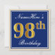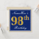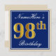 Convites Elegante, Azul, Faux Dourado 98º Aniversário + Nom