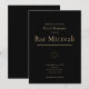 Um convite de Bar Mitzvah elegante e moderno com texto em dourado num fundo preto e um adorno de estrela simples. Outros itens para o evento também disponíveis.