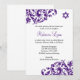 Um convite para Bat Mitzvah, roxo e na moda escuro. Apresentando bonito espirais florescentes e Estrela de David. Entre em contato com o designer em www.printcreekstudio.com para obter ajuda gratuita do design ou para adicionar um nome hebraico.