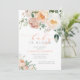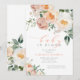 O Elegante Peach Baby In Bloom Girl Chá de fraldas Invitation apresenta lindos pessegueiros e flores florais brancas e verde juntamente com caligrafia moderna.