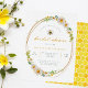 Um chá de panela elegante com uma coroa oval de flores margaridas, uma abelha de mel, e um padrão aquarela de mel no reverso. Chá de panela, está na fonte amarela moderna de caligrafia. Personalize com seus detalhes.