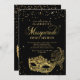 Convites Elegante Black Dourado Glitter Mascarada Doce 16