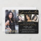 Convite moderno de festa de formatura preto e dourado com 4 fotos e elegante tipografia de guiões de ouro manuscrito com dourado no verso (apagar no EDIT se não desejar). Faça alterações na cor de fundo e no texto na EDIT. ASSISTÊNCIA: Para obter ajuda com a modificação ou personalização do design, transferindo o design para outro produto ou, se você quiser coordenar itens, entre em contato com o designer ANTES DE PEDIR por meio do Zazzle Chat ou makeitaboutyoustore@gmail.com.