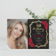 Elegante convite de 50 anos florais com sua foto. Design vermelho preto de vidro com ouro brilhante. Apresenta rosa vermelha, fonte de script e confetti. Perfeito para uma festa de comemoração de na moda adulto. Personalize com seus próprios detalhes. Pode ser personalizado para qualquer idade! Impressos convites Zazzle ou modelo de impressão digital instantânea para download.