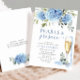 Convites Elegante Blue Hydrangea Floral PEARLS e Prosecco