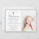 Um elegante Clássico com um toque de Convocação Cristã moderna para rapazes. A design apresenta a fotografia do seu filho em metade do convite, na outra metade, todas as informações sobre eventos em cinzas de prata, uma bela cruz de prata de cinza, "Batismo" na tipografia clássica da escrita. O design é finalizado no reverso com um marinho azul e faixas brancas de fundo. Personalize com os campos de modelo fornecidos ou clique em personalizar para mais opções de edição.