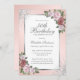 Elegante convite de aniversário floral cor-de-rosa-pincel e prata, com flores rosa-pinceladas e verde enquadrando os detalhes da festa de aniversário. Enche o convite de aniversário floral. Convidado de aniversário de prata e blush. Convite de aniversário rosa e prata. Convite de aniversário rosa. Personalize facilmente esta modelo a qualquer festa de aniversário.