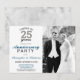 Celebre seu aniversário de casamento de prata com este convite de festa de aniversário de casamento de 25 anos com texto personalizável em prata e azul. Este design apresenta uma foto personalizável com filtro preto e branco para inserir seu toque especial. O verso apresenta uma bela textura de mármore.
