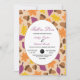 Este elegante convite de casamento outono é perfeito para um casamento moderno no outono. O simples design apresenta um padrão de folhas de queda com uma elegante tipografia preta e roxa sobre fundo branco.