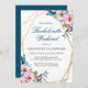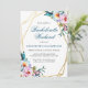 Flores de cor aquosa, cor-de-rosa e branco, de cor azul-claro, dentro de uma estrutura dupla geométrica dourada, apresentam floreios botânicos e de bagas. Personalize este elegante convite itinerário de fim de semana de bachelorette floral boho com suas próprias cores e fontes ou mantenha esta tipografia popular como é para sua conveniência. MIx e combinar com outros itens nesta bela coleção de casamento.