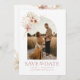 Este livro moderno inspirou a salvar a data com um quadro de fotos arquivado. Florais e folhas em belos terraços e matizes rosa adicionam um toque único. O motivo floral continua no verso, que exibe outra foto, e tem espaço para mais detalhes como o endereço do site de casamento.