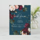 Este design de convite para chá de casamento de apresenta um tema elegante que é simples, mas espantoso. Um fundo azul escuro é a canvas perfeita para buquês de canto de flores realistas em branco-creme, rosa-pincel, burgundy e azul francês com folhagem verde-senada. Vibrante e rico em cores, este convite faz uma bela declaração. Criado pela imprensa simplesmente de farmácia.