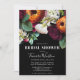Esta elegante e escura joia de tom burgundy, vinho, laranja e chá de panela floral de cor escura apresenta um conjunto de gráficos florais ricos, incluindo rosas, ranúculus, dahlias, snapdragons e outras flores em burgundy, laranja, blush e branco sobre fundo preto, e elegante caligrafia com letras de texto. Fácil de personalizar com suas próprias informações, e a cor de fundo também é personalizável. Estes cartões são perfeitos para a noiva planejando um casamento de vassoura, casamento de jardim, casamento vintage, casamento romântico, casamento floral, ou para qualquer noiva que ame tons de joias e flores. Fácil de personalizar com suas próprias informações, e a cor de fundo também é personalizável. Design de T.K. em frente.