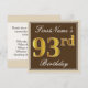 Convites Elegante, Brown, Faux Dourado 93º Aniversário + No