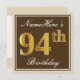 94 anosnoventa e quatro anosfundo castanhotexto de script eleganteaparência falsa de cor douradaimitação cor de aparência douradanome personalizado94 o aniversáriononagésimo quarto aniversáriofesta de aniversário