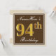Convites Elegante, Brown, Faux Dourado 94.º Aniversário + N