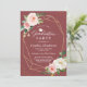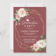 Celebre este marco com um convite festa de formatura impressionante. Apresentando um rico fundo burguês, sotaques geométricos dourados e delicados florais cor-de-rosa e brancos, este design exude elegância e charme. Personalize o texto para honrar seu formando e criar uma manutenção de celebração inesquecível.