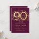 Elegante convite de aniversário de 90 de ouro de marrom. Design de vinho de marsala tinto escuro, personalizável, com acentos botânicos rosas e letra tipografia. Simples cartão de convite floral perfeito para uma comemoração de um na moda. Personalize com seus próprios detalhes. Impressos convites Zazzle ou modelo de impressão digital instantânea para download.