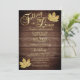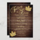 Para aquele tema de outono ao ar livre / outono, estes cartões de modelo de convite para o país, celeiro e ouro são fáceis de editar. SE APAIXONANDO em design de topografia dourada e folhas metálicas douradas dá a essas cartas um toque extra de elegância. Fundo com painéis de madeira escura. A parte de trás da carta tem um coração de ouro falso com a noiva e os monogramas do noivo. Entre em contato com o designer para obter mais variações.