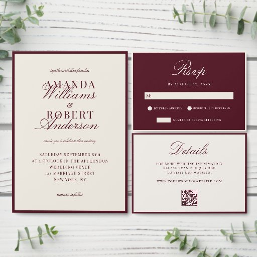 Convites Elegante Casamento Burgundy Old Money