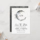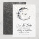 Boho Estrela Crescente Lua Monograma Salve a Data. Celebre uma noite sob as estrelas com este tema de casamento celestial boho caprichoso. Apresentando uma lua crescente no céu da meia-noite em aquarela, estrelas douradas e sutil ênfase boêmia boho, este design cria um visual elegante e divertido. O verso apresenta uma noite estrelada escura em aquarela. A paleta de cores inclui preto, branco, dourado e cinza. Com uma mistura elegante de tipografia cursiva e fonte serifa, este save the date promete uma noite mágica sob um céu celestial. Disponível como convite impresso ou como convite digital para download que você pode enviar por e-mail ou mandar imprimir localmente! Disponível como convite impresso ou como convite digital para download que você pode enviar por e-mail ou mandar imprimir localmente!